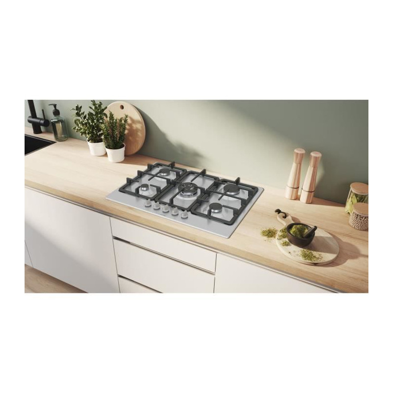 Table de cuisson a gaz - BOSCH Série 4 - 5 foyers - 52 x 75 x 4,5 cm - PGQ7B5K90 - Inox