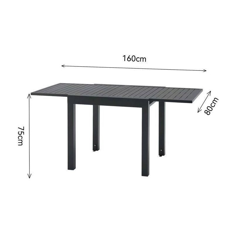 Table extensible 6 personnes en aluminium - Profitez d'une table pratique et élégante aux dimensions modulables (80/160 x 80 x 75 cm). Sa structure robuste en aluminium (profilés 85x35 mm et 60x60 mm) assure solidité et légereté, parfaite pour vos repas en intérieur comme en extérieur.