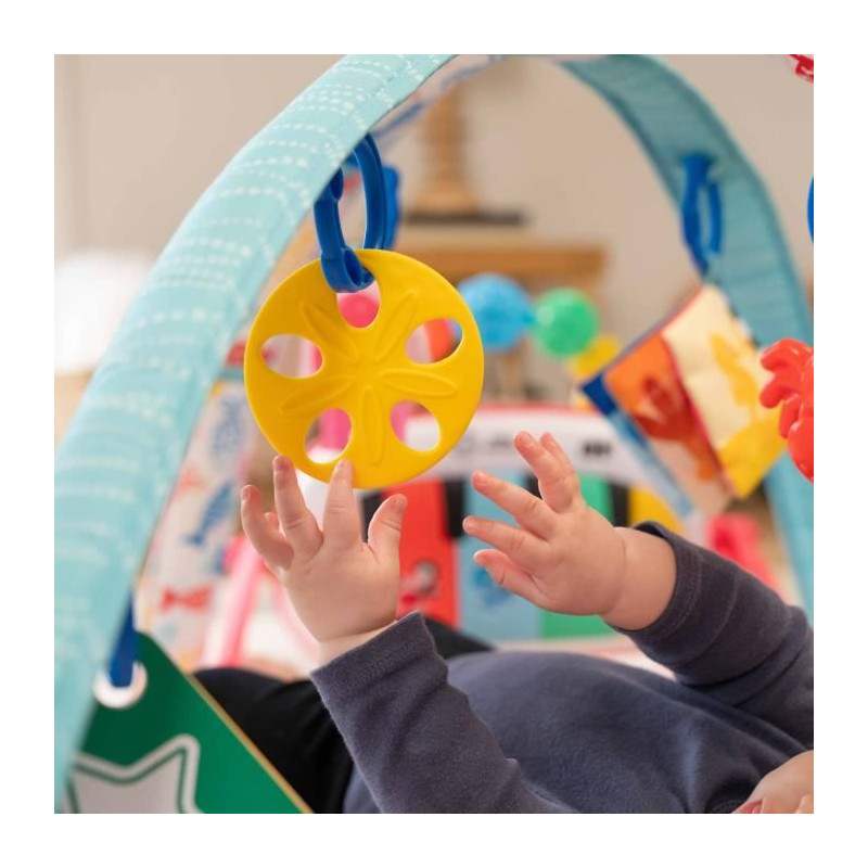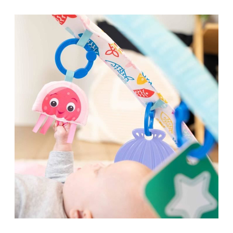 Offrez a bébé un océan de plaisir avec le Baby Einstein Ocean Explorers 4-in-1 Kickin' Tunes Jellyfish Jamboree Music & Language Discovery Gym en rose. Fabriqué par le premier fabricant de tapis d'éveil*, ce tapis d'éveil musical permet a bébé de s'amuser grâce a plus de 25 minutes de lumiere continue et se transforme de 4 façons différentes pour grandir avec bébé de 0 a 36 mois. 4 modes de jeu : s'allonger et jouer, jouer sur le ventre, jouer assis et se déplacer. Bébé adorera explorer les 2 barres de jouets et le piano a coups de pied avec 3 modes d'apprentissage et de jeu. Lorsque bébé grandit, relevez le piano pour jouer assis, ou détachez-le pour l'emmener en voyage ! La surface Magic Touch permet au piano de réagir a chaque coup de pied, tapotement et pression pour que bébé puisse faire de la musique facilement ! Les parents apprécient le fait que cette salle de sport unique favorise le développement visuel et la motricité fine et globale de bébé. Le piano propose plus de 90 mélodies et sons attrayants et enseigne les couleurs, les formes et les chiffres en 4 langues (anglais, espagnol, français et allemand). 7 jouets encouragent la prise en main et l'engagement sensoriel. Le coussin de soutien offre a bébé un soutien supplémentaire pendant la période où il est sur le ventre. (*Circana, ventes en dollars américains, janvier-octobre 2023). Dimensions : 45,72 x 86,36 x 68,58 cm. Nécessite 3 piles AA (non incluses). Tapis lavable en machine. Les jouets s'essuient.