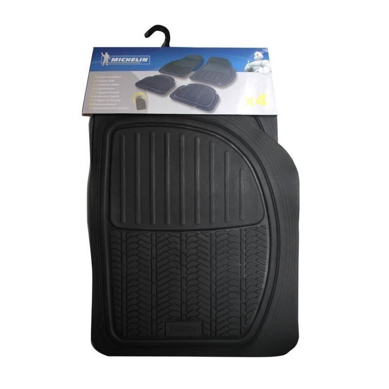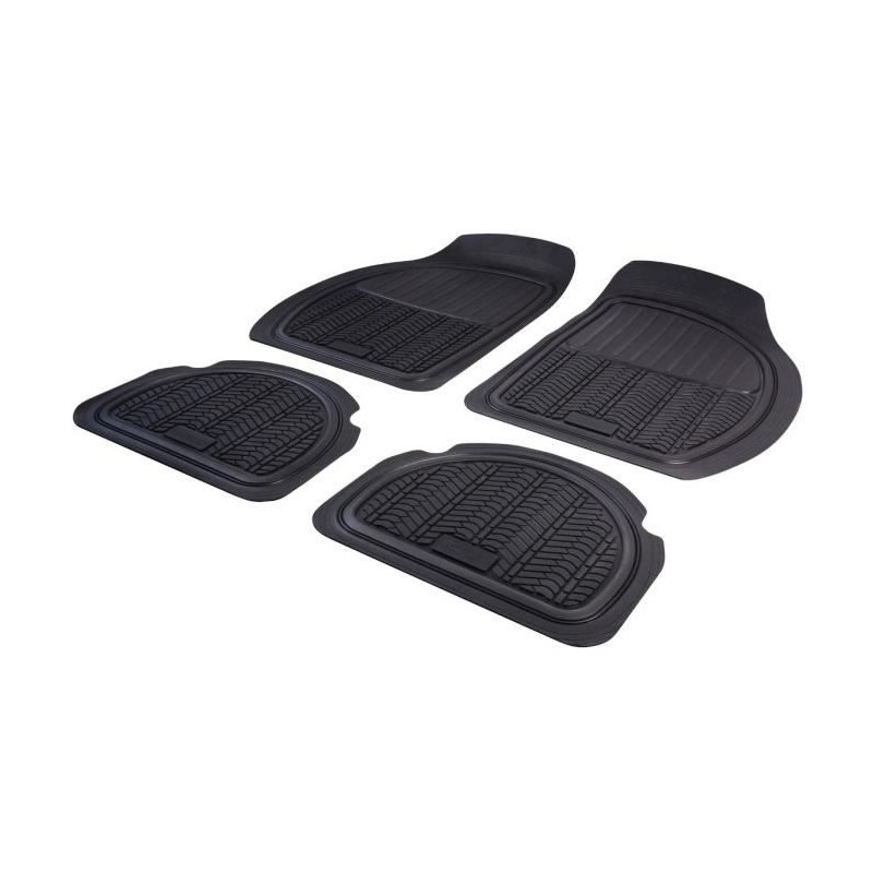 Car mat with furrows Black - Type rubber tire - Complete equipment front and rear of the vehicle - High resistance to wear - Set sold individually