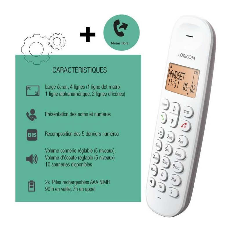 Cordless landline phone - LOGICOM - DECT ILOA 150 SOLO - Taupe - Without answering machine