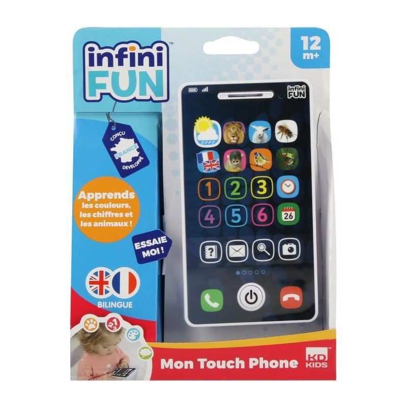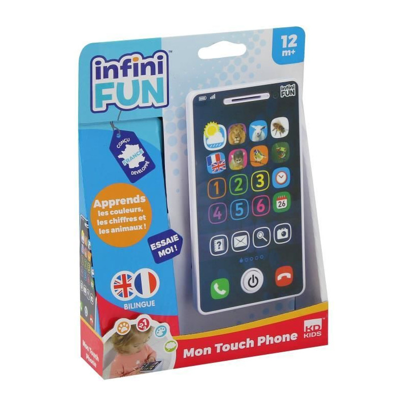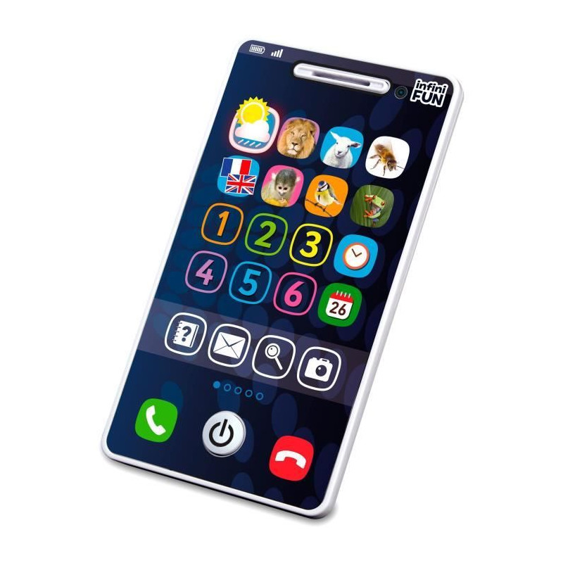 INFINI FUN Bilingual Educative Smartphone - With its very realistic look it will hold all the attention of your children! With 4 game modes, the child will discover the numbers, colors, names of animals, their characteristics and their cries. Batteries included 3 * AAA - Mixed - From 12 months - Supplied individually