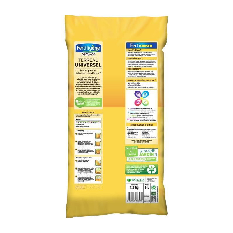 Terreau universel, pour toutes les plantes d'intérieur et du jardin (hormis plantes a besoins particuliers). Contient de l'engrais organique pour une bonne croissance et une floraison abondante. Produit naturel, Utilisable en Agriculture Biologique et fabriqué en France.