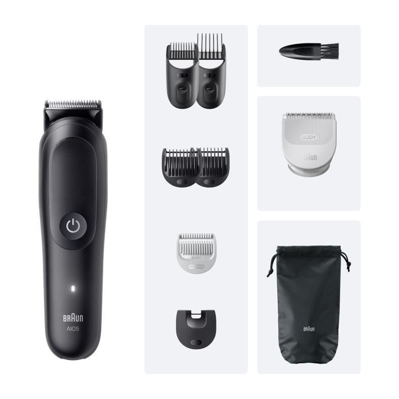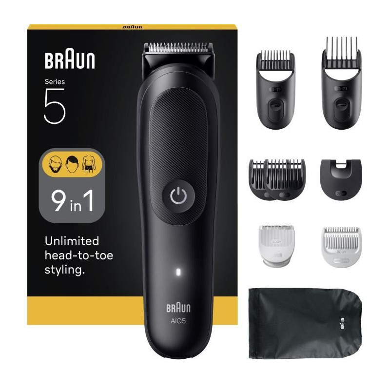 Tondeuse cheveux et barbe - BRAUN - AIO5540 - 120 min - 14 réglages - Noir