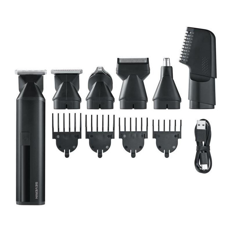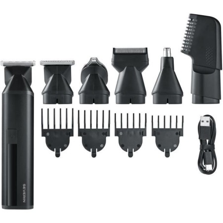 Tondeuse cheveux & barbe 6-en-1 multifonction - SEVERIN - HS 0710 - 90 min autonomie - Embouts magnétiques - IPX6 - Noir