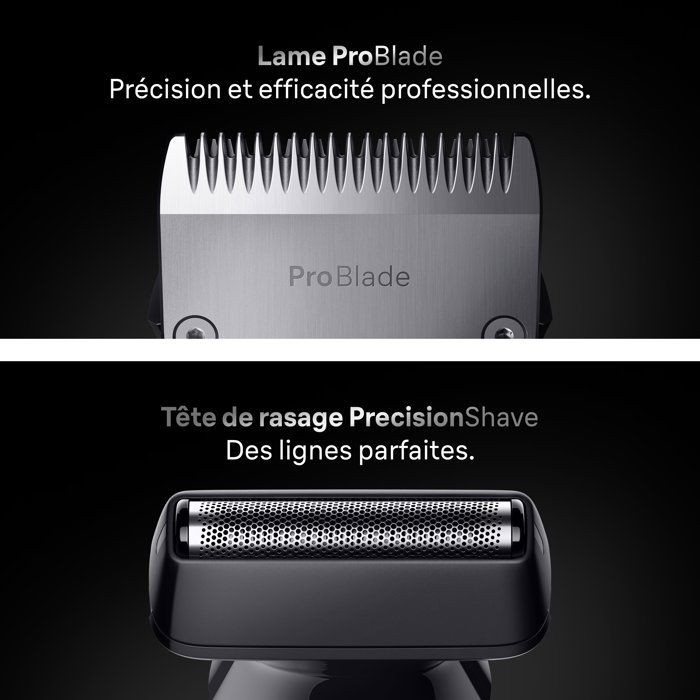 Le meilleur kit de tondeuse tout-en-un de Braun, pour hommes. Le kit 11-en-1 vous permet de tailler votre barbe sans effort, de couper vos poils d'oreilles et de nez, de couper vos cheveux et de raser votre corps. Obtenez de la précision pour tout type de barbe grâce a la lame ultra affûtée ProBlade et a la technologie AutoSense. La tete PrecisionShave permet d'obtenir un rasage précis et des lignes parfaites. Les 14 réglages de longueurs et le manche AquaGrip antidérapant pour une utilisation sous l'eau offrent un contrôle total. La tondeuse tout-en-un Series 7 est conçue pour durer. Elle est étanche et possede une batterie Li-Ion d'une autonomie allant jusqu'a 120 minutes.