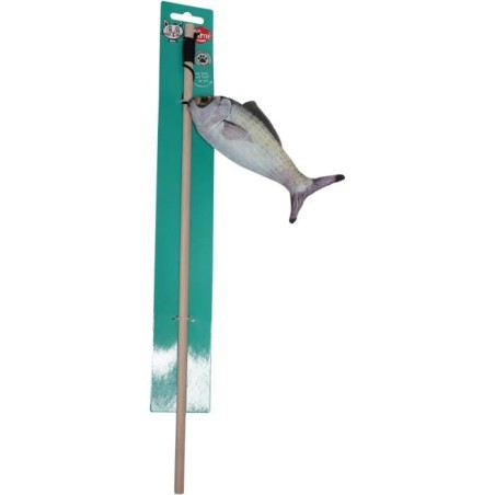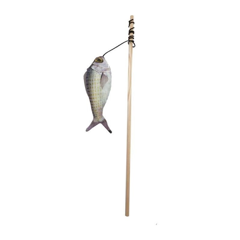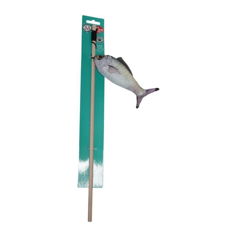 Jouet chat - AIME - Canne a peche poisson - Stick bois, poisson 15cm