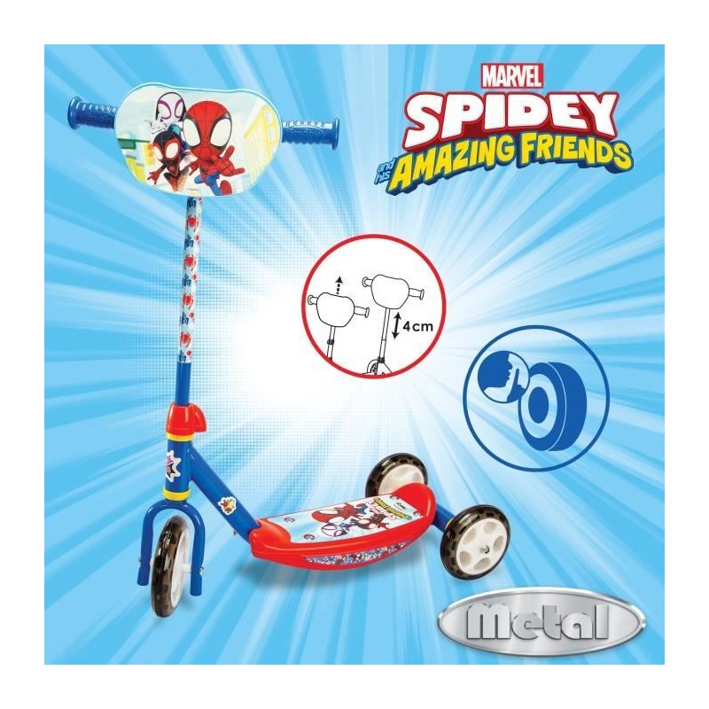 Une premiere patinette 3 roues pour partir a l'aventure !_x000D_ Sa structure en métal lui confere une grande longévité et assure la sécurité de votre enfant !_x000D_ Le guidon s'ajuste librement afin qu'il soit toujours adapté a l'enfant (hauteur max 67cm)._x000D_ Repose-pied antidérapant._x000D_ A partir de 3 ans. Poids max 20kgs.