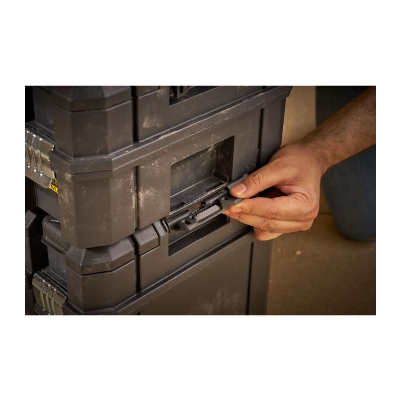 Larges attaches métalliques. Attaches latérales avec pignon métal pour adapter d'autres modules PRO-STACK(TM). Top organiseur intégré. Longue poignée ergonomique pliable. Large volume de rangement 23 litres. 30 kg. Etiquette personnalisée. Fait partie du systeme de rangement modulaire PRO-STACK(TM). Quand il s'agit du rangement, nous savons que tout le monde n'a pas besoin de la meme solution. C'est pourquoi le systeme de rangement modulaire PRO-STACK(TM) peut etre configuré exactement comme vous le souhaitez. parce que la polyvalence est importante. Conçu avec des clips latéraux robustes et uniques, PRO-STACK(TM) devient la solution de travail idéale, quelle que soit la tâche. Créez une solution de rangement polyvalente et pratique sur mesure pour vous et votre métier grâce a de multiples options de modules et de transport.