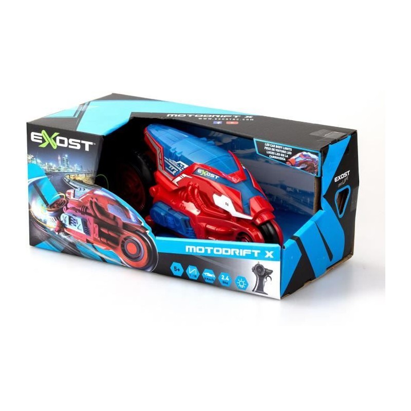 Moto télécommandée - EXOST - MOTODRIFT X LED 24 Ghz - 1:18 - Rouge - 23 cm - Des 5 ans