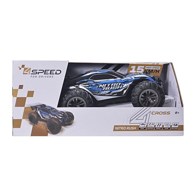 Voiture radiocommandée - 4SPEED - Nitro Rush - Echelle 1/18 - 2,4 GHz - Tout-terrain - Batterie rechargeable - 10 km/h - Des 5