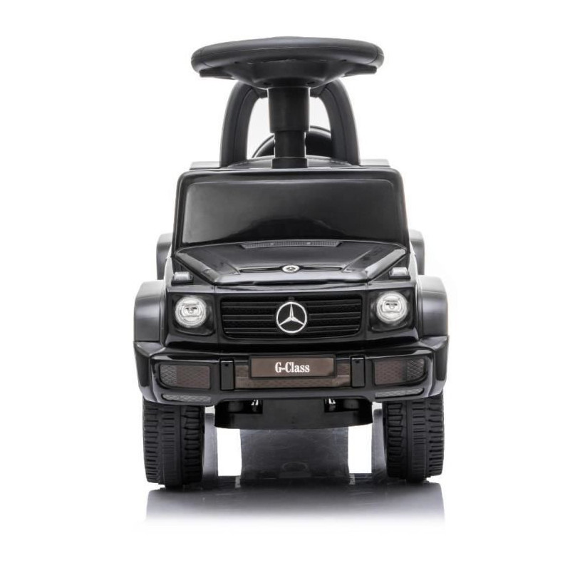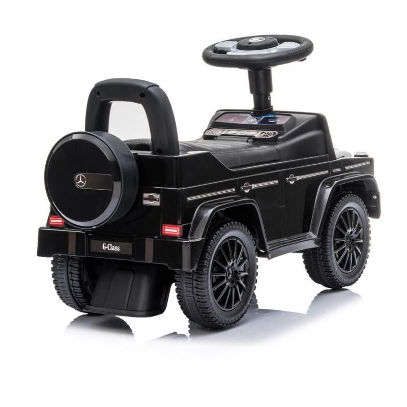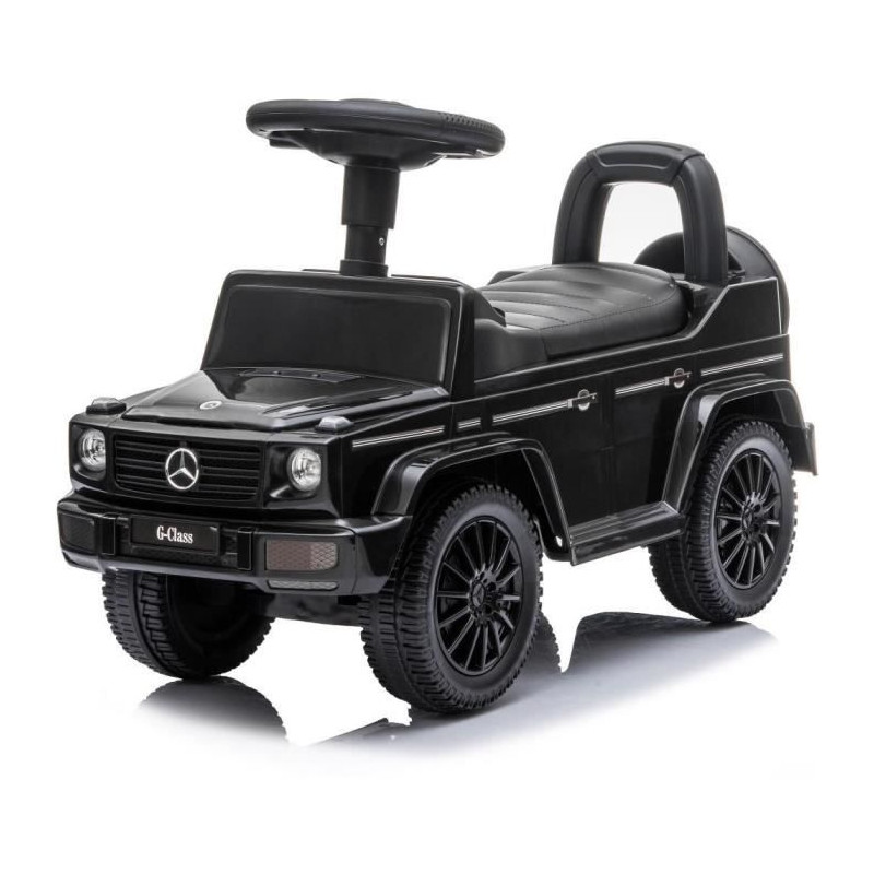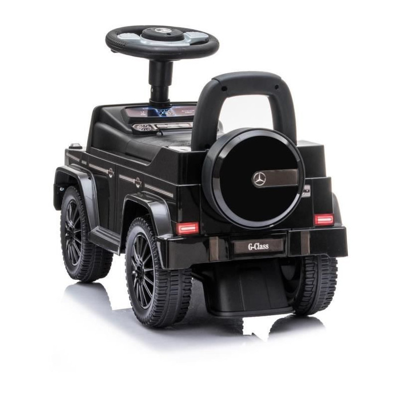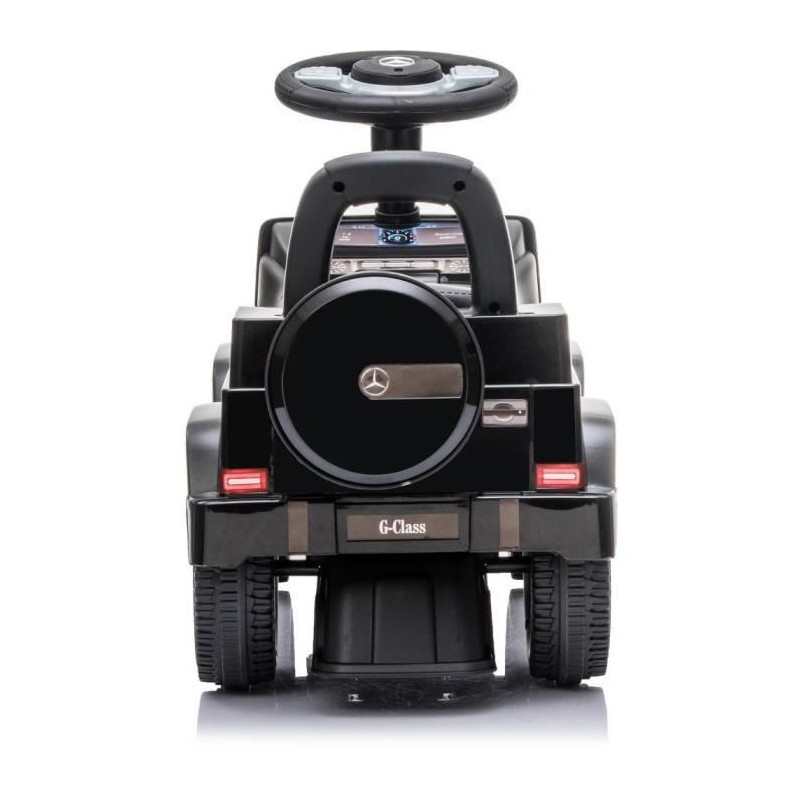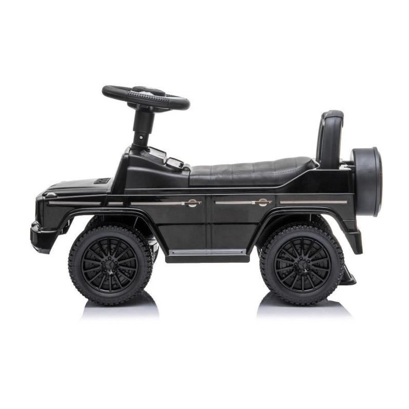 Découvrez le porteur enfant Mercedes G350d de Buddy Toys, modele BPC 5188. Ce jouet sous licence officielle offre un espace de rangement sous le siege, des sons et mélodies sur le volant, et convient aux enfants des 2 ans. Capacité de charge de 25 kg, dimensions de 70 x 29 x 41 cm, couleur noire. Piles non incluses.