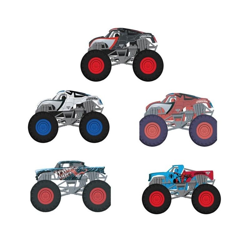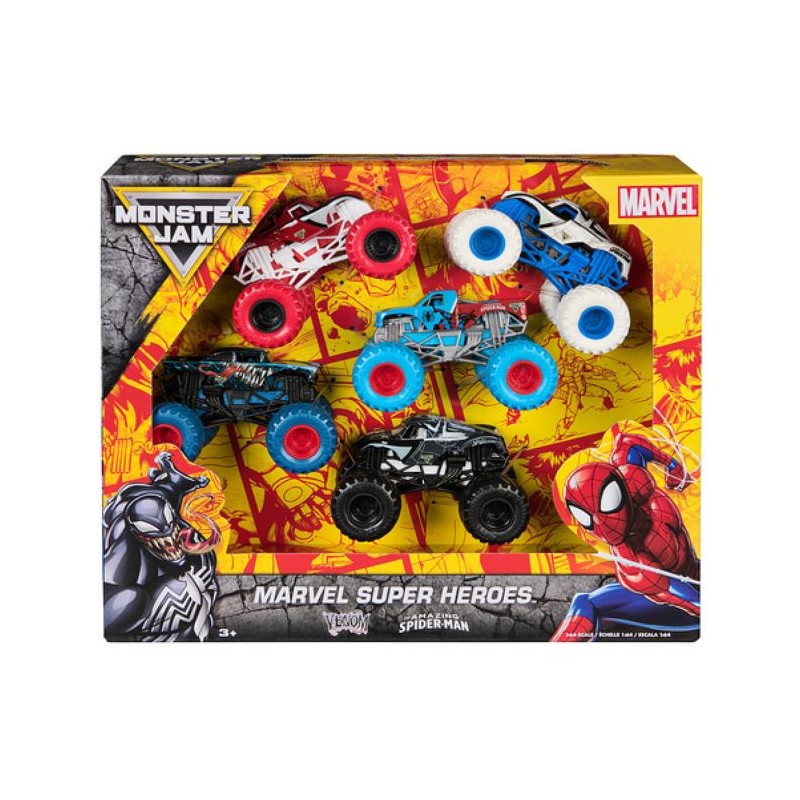 Pack de 5 Véhicules Spider-Man Die-Cast 1:64 &ndash Monster Jam Retrouvez l'univers Marvel sur les pistes de Monster Jam avec ce pack de 5 véhicules True Metal a l'échelle 1:64. Inspirés des super-héros emblématiques comme Spider-Man, ces Monster Trucks hyper détaillés reprennent les codes du show avec un design agressif, de vraies suspensions et des roues souples pour réaliser des cascades spectaculaires. Des 3 ans, les enfants peuvent revivre les plus grands moments des spectacles Monster Jam&hellip version super-héros ! Coffret de 5 véhicules Monster Jam aux couleurs de l'univers Spider-Man Modeles True Metal a l'échelle 1:64 Détails fideles aux super-héros Marvel, look agressif et suspensions fonctionnelles Roues souples et ponts croisés pour franchir tous les obstacles Idéal pour reproduire les cascades et scenes de spectacle Monster Jam Des 3 ans Caractéristiques du Pack de 5 Véhicules Spider-Man Die-Cast &ndash Monster Jam Contenu : 5 véhicules Monster Jam True Metal a l'échelle 1:64 Theme : super-héros Marvel / Spider-Man Dimensions produit (hors pack) : 25,4 x 30,5 x 7,1 cm Poids net : 680 g Âge recommandé : des 3 ans Présentation : boîte ouverte Le Pack de 5 Véhicules Spider-Man Monster Jam est le combo parfait pour les fans de super-héros et de cascades spectaculaires. De quoi créer son propre show a la maison, a l'image des plus grands événements Monster Jam.