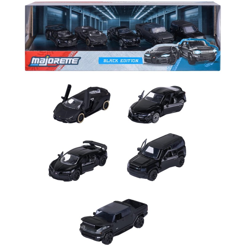 Retrouvez les automobiles les plus célebres au format mini et en métal grâce a Majorette !_x000D_ Véritables passionnés ou simples amateurs vous trouverez votre bonheur parmi les nombreuses gammes que présente la marque !_x000D_ Ce grand coffret se compose de 5 modeles de véhicules a roues libres des plus grands constructeurs mondiaux en Black Edition._x000D_ Vous serez vite séduit par ces véhicules a l'échelle 1/64eme. Ils disposent de parties mobiles, de phares translucides et de suspensions._x000D_ N'hésitez plus a commencer une nouvelle collection ou a amuser vos enfants avec ces petites voitures !_x000D_ A partir de 3 ans.