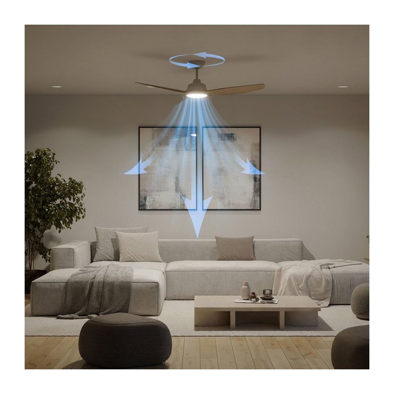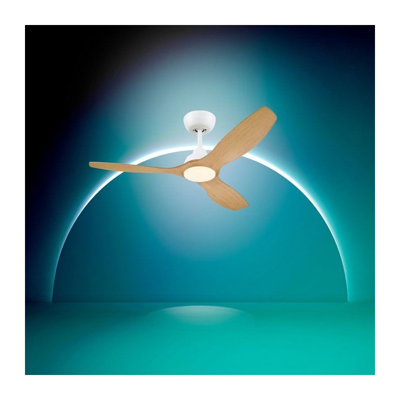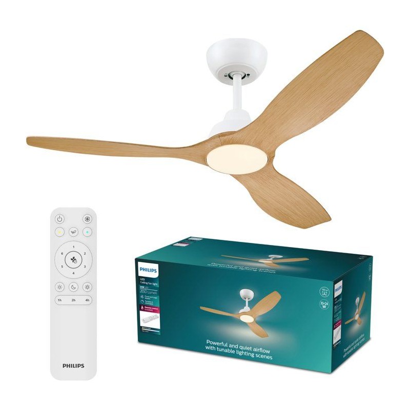 Ventilateur de plafond - Philips - Olas - Pales fixes - Diametre 132 cm - Blanc/Bois - LED intégrée + télécommande