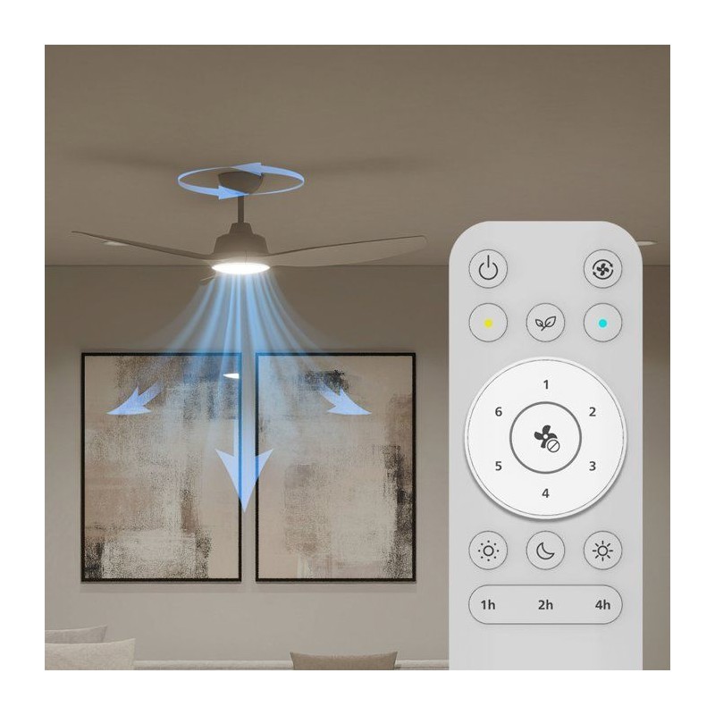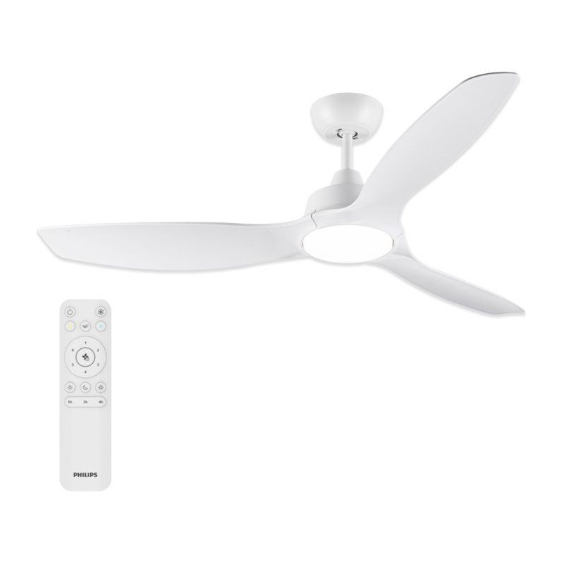 Ventilateur de plafond - Philips - Pales fixes - Lumiere blanche réglable -Blanc/Blanc - télécommande incluse