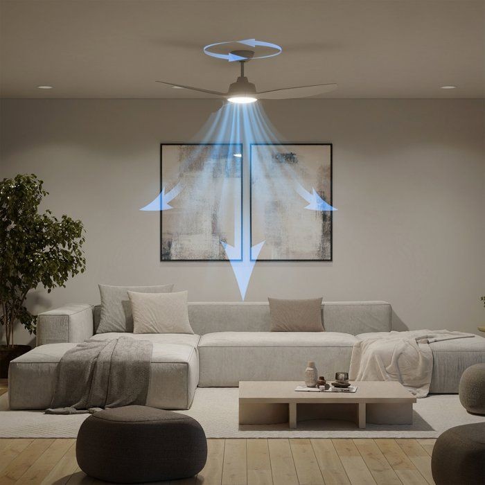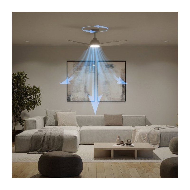 FLUX D'AIR PUISSANT - Bénéficiez d'un refroidissement rapide et efficace grâce a un moteur CC robuste, une conception optimisée des pales du ventilateur et un débit d'air maximal de 190 m³/min. VITESSE DU VENTILATEUR RÉGLABLE - Choisissez parmi six vitesses de ventilation pour personnaliser le flux d'air en fonction de vos activités ou de vos besoins saisonniers. DEUX SENS DE FLUX D'AIR - Le moteur CC réversible permet un flux d'air vers l'avant pour le refroidissement estival et un flux d'air inversé pour faire circuler l'air chaud en hiver, ce qui le rend idéal pour une utilisation tout au long de l'année. FONCTIONNEMENT SILENCIEUX - Avec un niveau sonore inférieur a 50 dB (plus silencieux qu'un réfrigérateur), ce ventilateur garantit un environnement paisible. Sa fixation stable au plafond réduit les vibrations pour un confort accru. SÛR ET STABLE - Conçu avec un support de plafond durable, des roulements stables et des pales parfaitement équilibrées, ce ventilateur réduit les oscillations, améliore la sécurité et prévient les dommages potentiels au plafond au fil du temps.