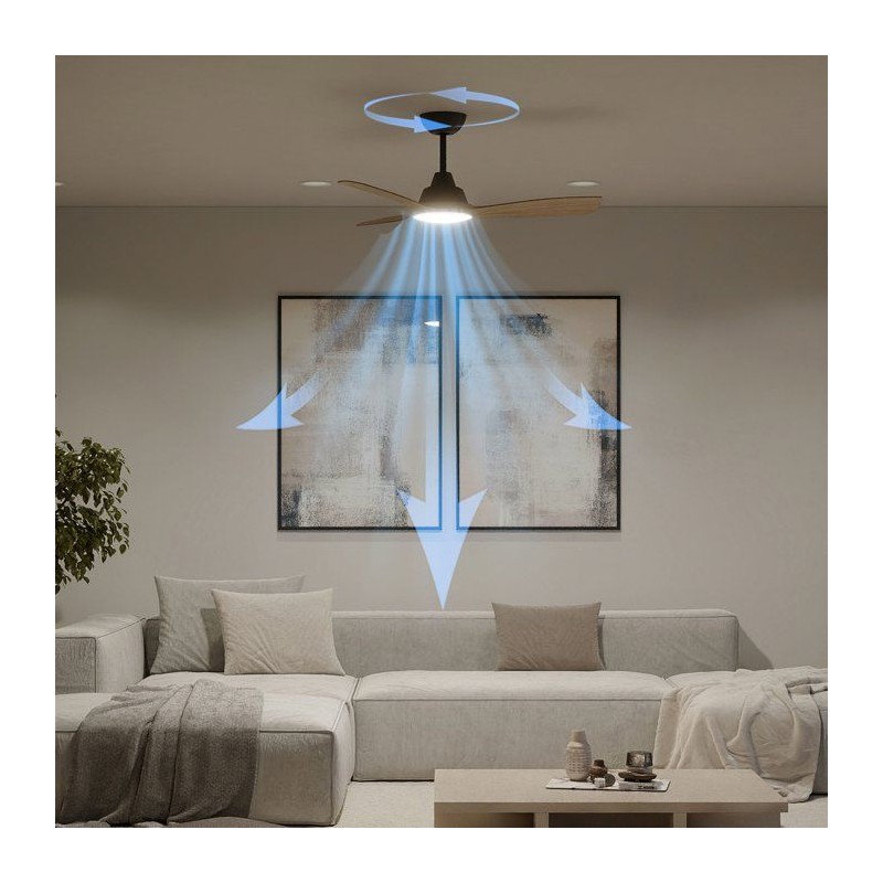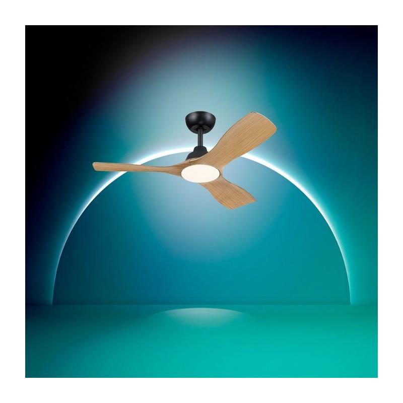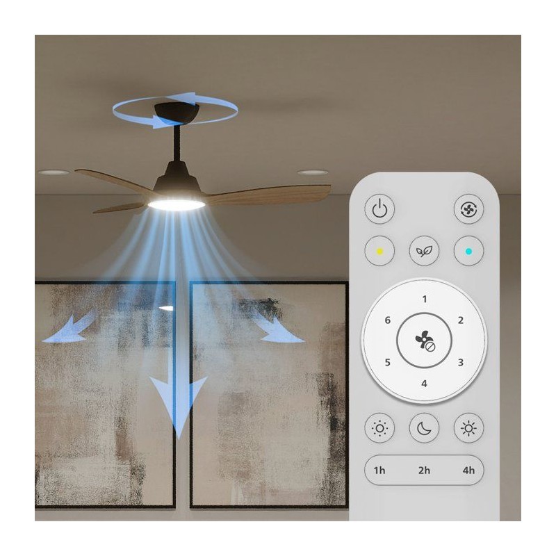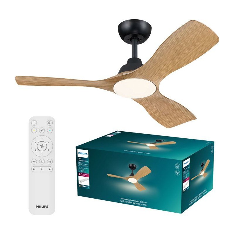 Ventilateur de plafond - Philips - Olas - Pales fixes - Diametre 106 cm - Noir/Bois - LED intégrée + télécommande