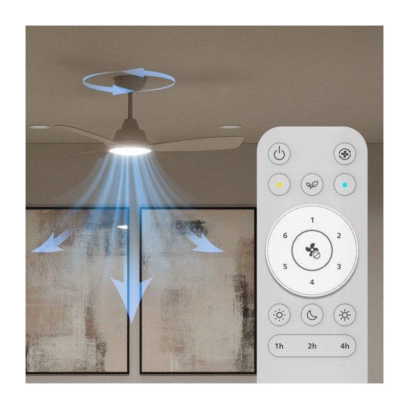 Ventilateur de plafond - Philips - Pales fixes - Lumiere blanche réglable - Blanc - télécommande incluse