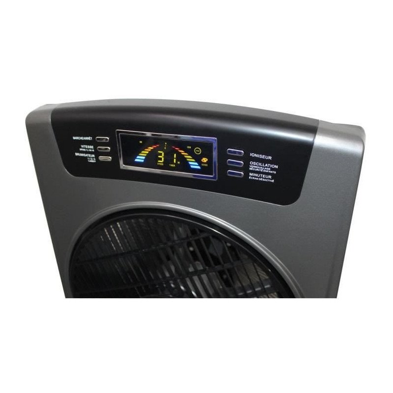 Oceanic Rafraîchisseur 4 en 1 - Multifonction : ventilation, brumisation, purification et humidification de l'air - Puissance: 90 W - 3 vitesses - Oscillation 80° - Réglage du débit d'air - Réservoir : 2,5 litres - Programmation jusqu'a 9 heures - Télécommande - Sur roulettes