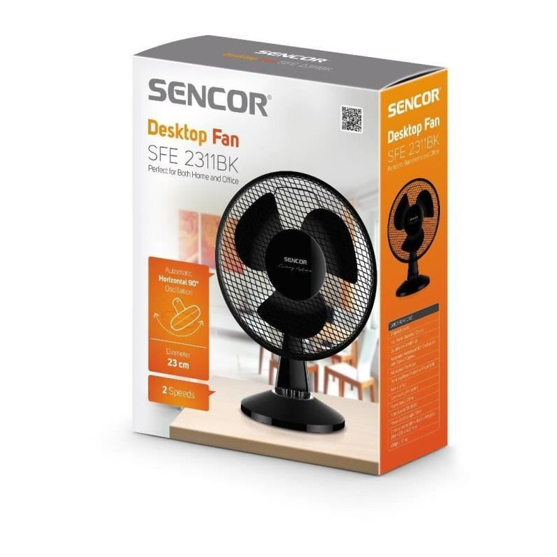 Ventilateur de bureau - Sencor - SFE 2311BK - 2 vitesses - Oscillation 90° - Silencieux 51 dB