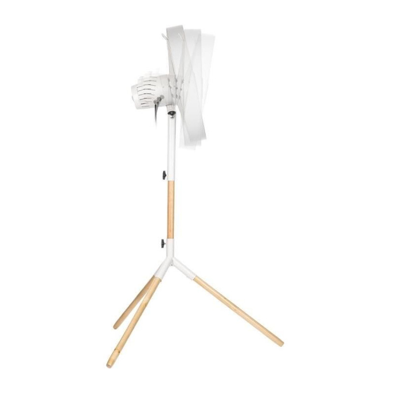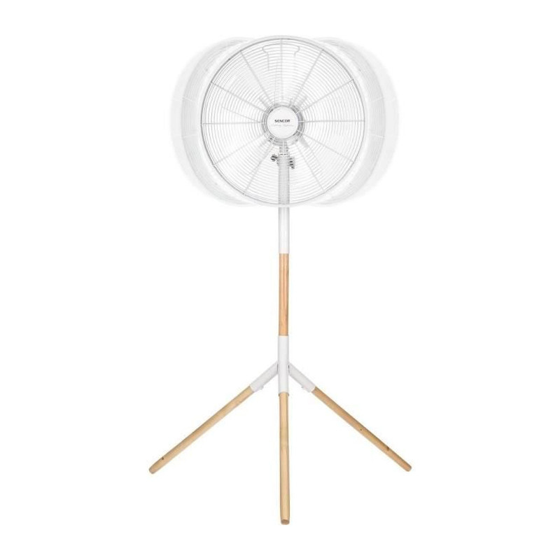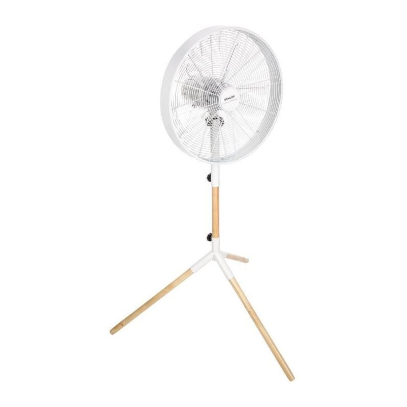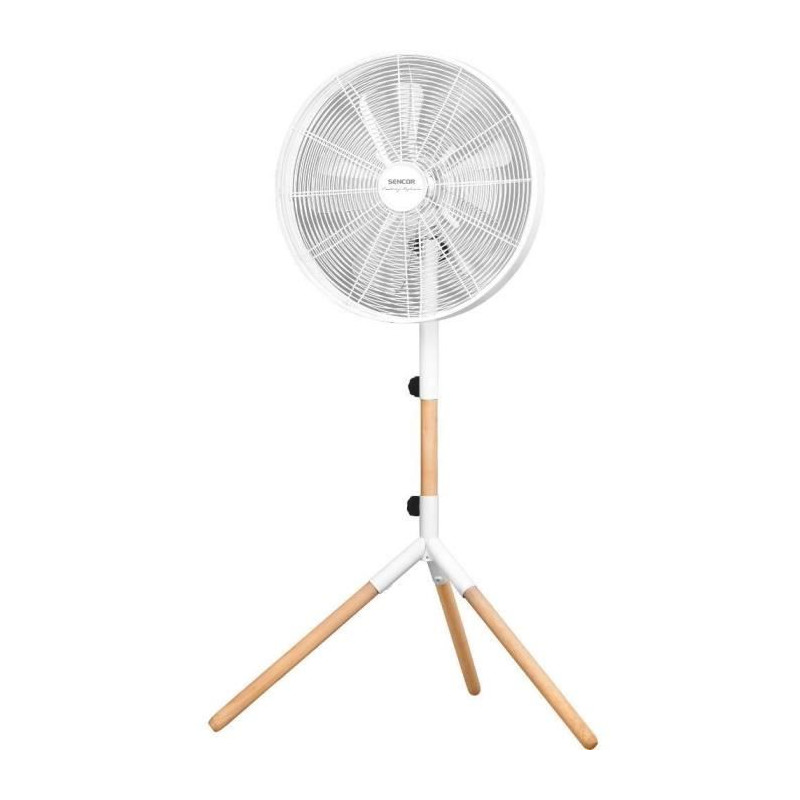 Le ventilateur sur pied Sencor SFN 4080WH allie design et performance. Avec un diametre de 40 cm et une hauteur réglable de 120 a 133 cm, il offre 3 vitesses et une oscillation automatique a 80°. Sa construction en métal et bois véritable assure durabilité et stabilité, tout en garantissant un fonctionnement silencieux et une protection contre la surchauffe.