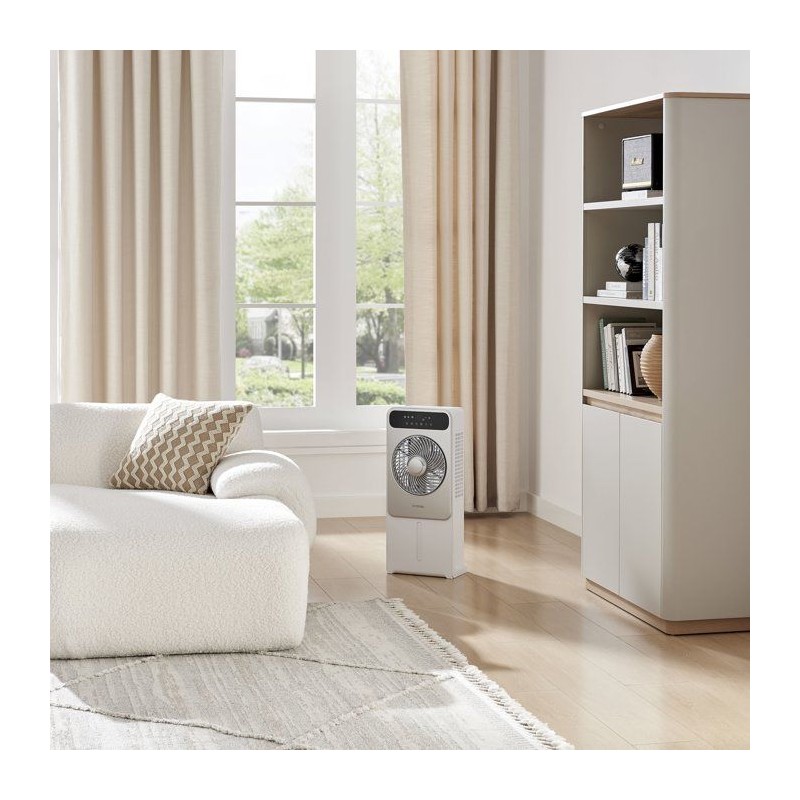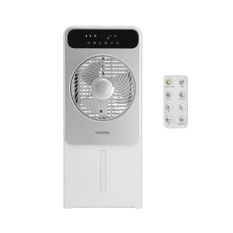 Ventilateur brumisateur 3 en 1 Oceanic - Puissance : 50W - 12 vitesses - 3 modes - Hauteur de 66,8 cm - Fonction rotatif a 360 degrés - Niveau sonore 61 dB - Panneau de commande LED - Télécommande - Minuterie jusqu'a 9h - Réservoir 1,5L - Poignée de transport intégrée - Gris et blanc